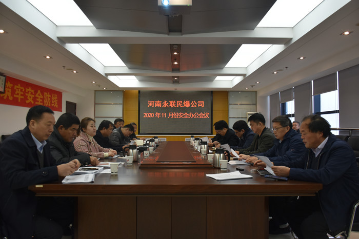 2020年11月30日,河南省永聯(lián)民爆器材股份有限公司召開了11月份安全辦公會(huì)議,公司領(lǐng)導(dǎo)班子、安委會(huì)成員、安委會(huì)辦公室成員以及宜陽縣、光山縣、寶豐縣、內(nèi)鄉(xiāng)縣、鶴壁、固始縣等6家分公司負(fù)責(zé)人參加了會(huì)議。會(huì)議由公司副總經(jīng)理靳義國主持,公司董事長、總經(jīng)理劉嵩參加會(huì)議并講話。